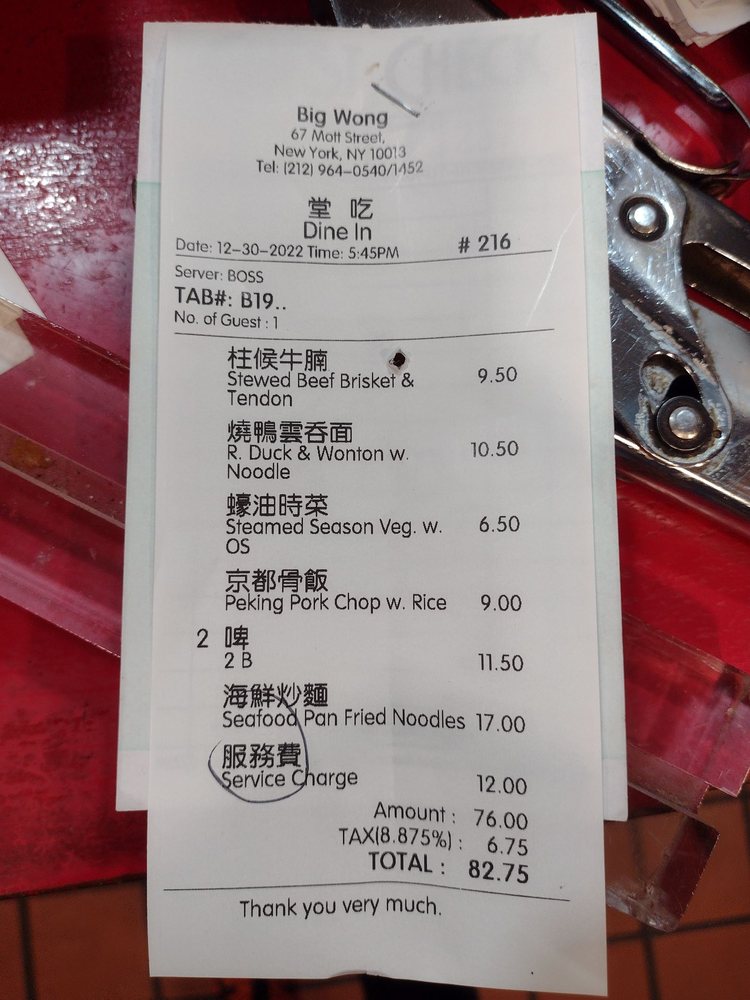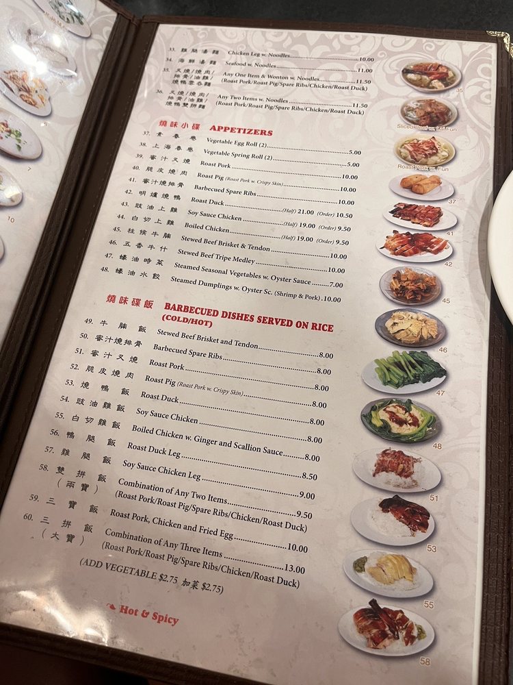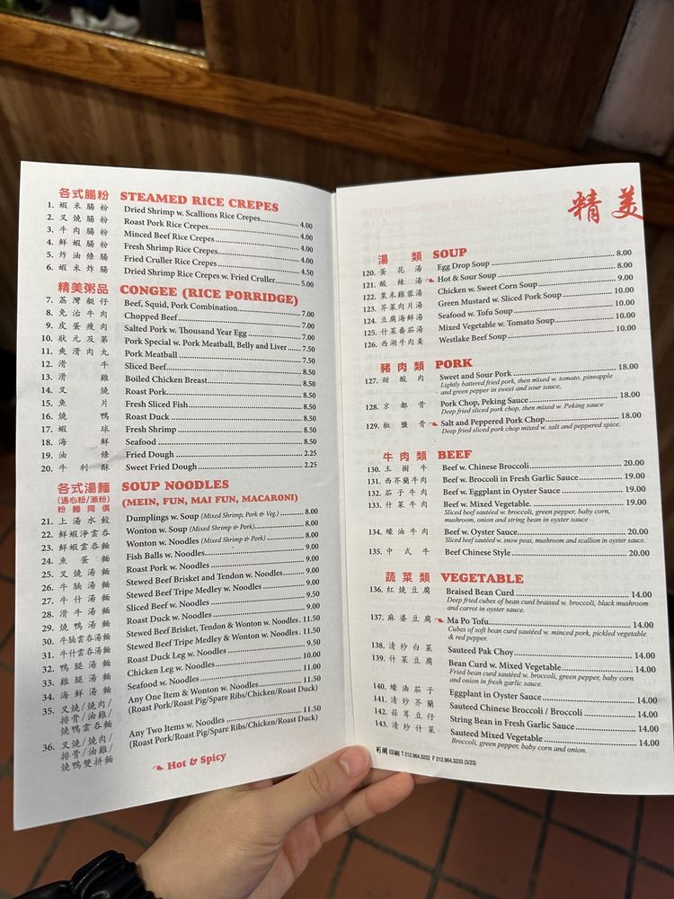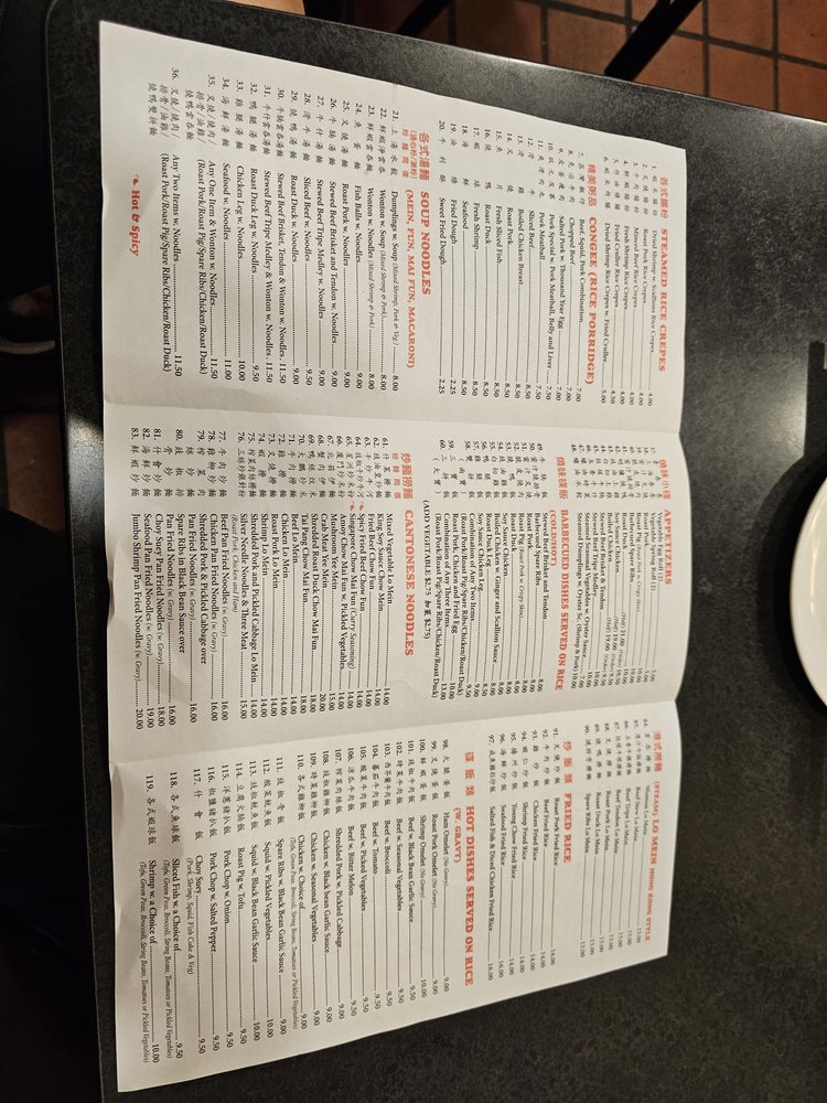 Introducing the menu at Big Wong, a Chinese seafood restaurant located in New York City. With a diverse selection of appetizers, soups, and steamed rice crepes, Big Wong offers a range of options for both meat lovers and vegetarians alike. Customer reviews rave about the perfectly cooked meats like roasted duck and barbecue spare ribs, as well as the flavorful soups such as hot and sour soup and seafood with tofu soup. The casual and lively atmosphere, along with options for delivery and takeout, make Big Wong a convenient choice for a satisfying meal. Don't miss out on their popular steamed rice rolls and the Roasted Pork Haw Fun in Soup, a favorite for many diners. Despite being cash-only, Big Wong's affordable prices and delicious food make it a must-visit spot for authentic Chinese cuisine enthusiasts.
